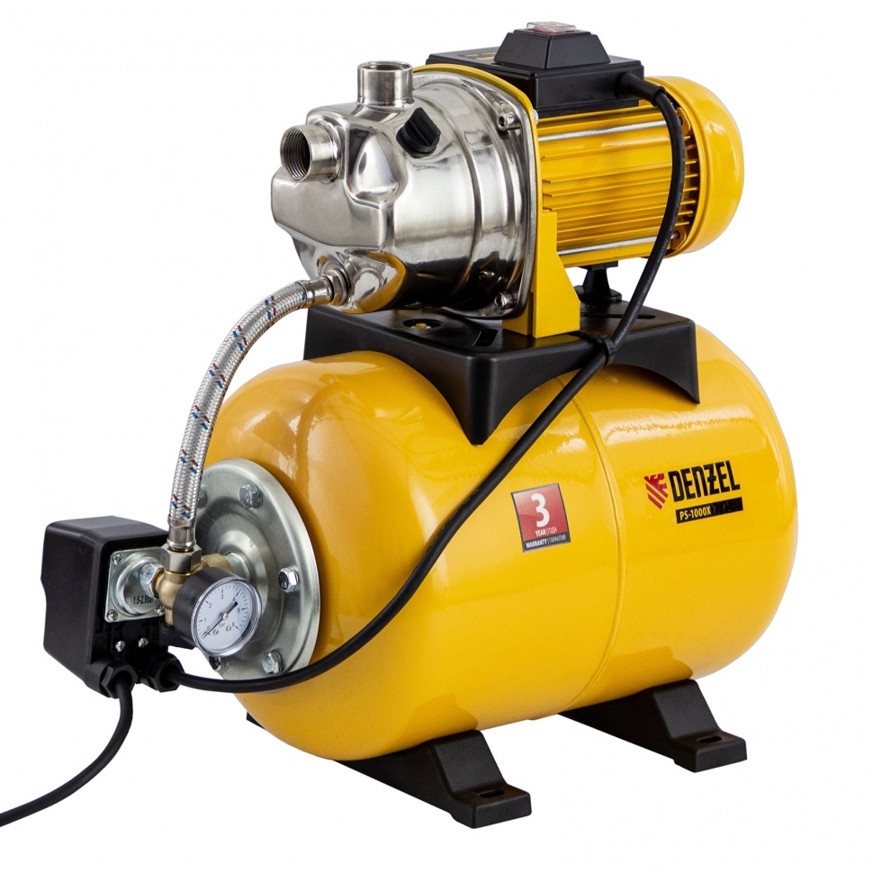Насосная станция нержавеющий PS1000X 1000 Вт 3500 л/ч ресивер 24 л напор 44 м Denzel