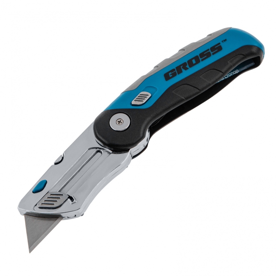 Складной ремонтно-монтажный нож Gross 78882 длиной 175 мм, с трехкомпонентной рукояткой, контейнером-держателем для лезвий и 2 запасными полотнами — режущий инструмент профессионального назначения. Используется для раскройки линолеума и обоев, разрезания картона, гипсокартона, кожи и других материалов. Нож защищен от самопроизвольного раскладывания — на боковой части имеется специальный стопор, фиксирующий держатель лезвия внутри корпуса. Износостойкость — лезвие из высокопрочной японской стали SK-2 толщиной 0,6 мм долго сохраняет режущие свойства.
