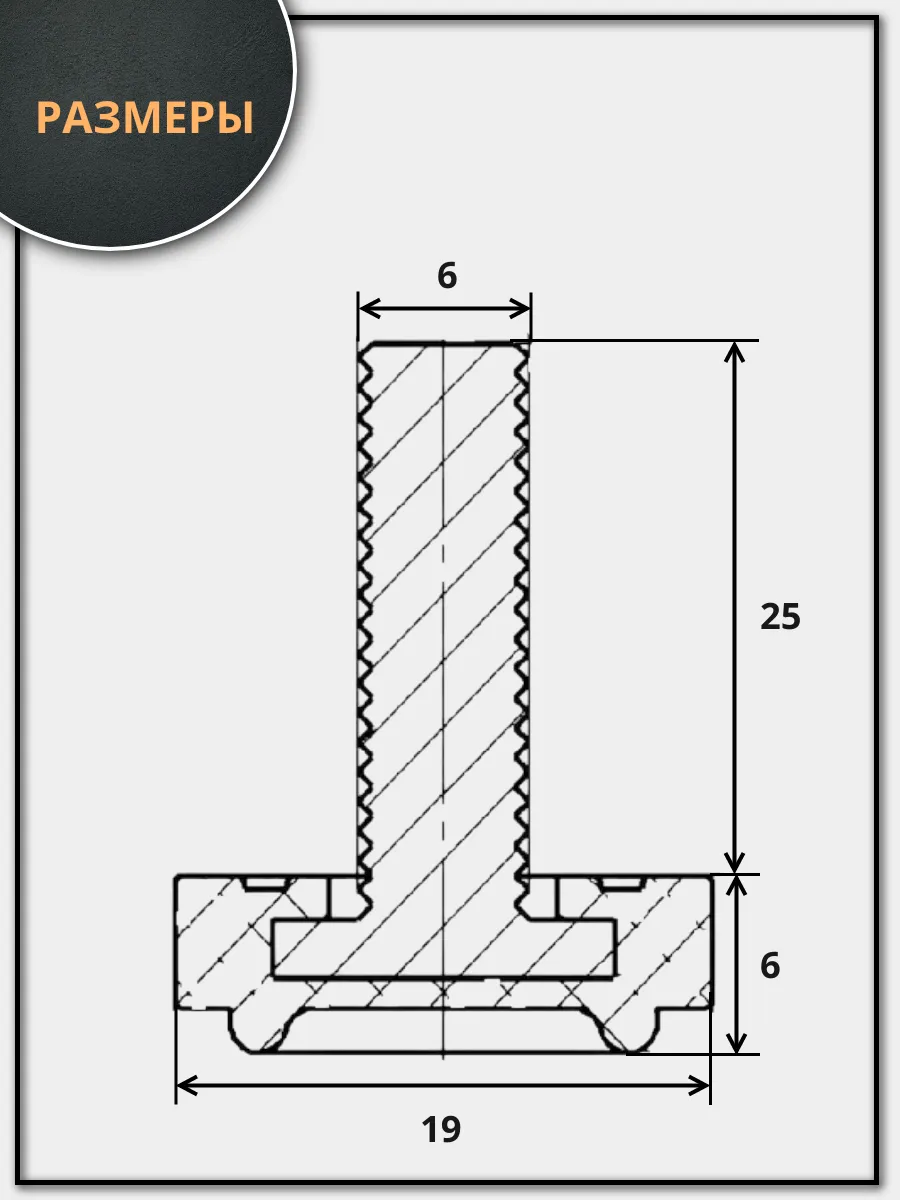 Ножка опора D19 М6х25 регулируемая мебельная под шестигранник 12 шт