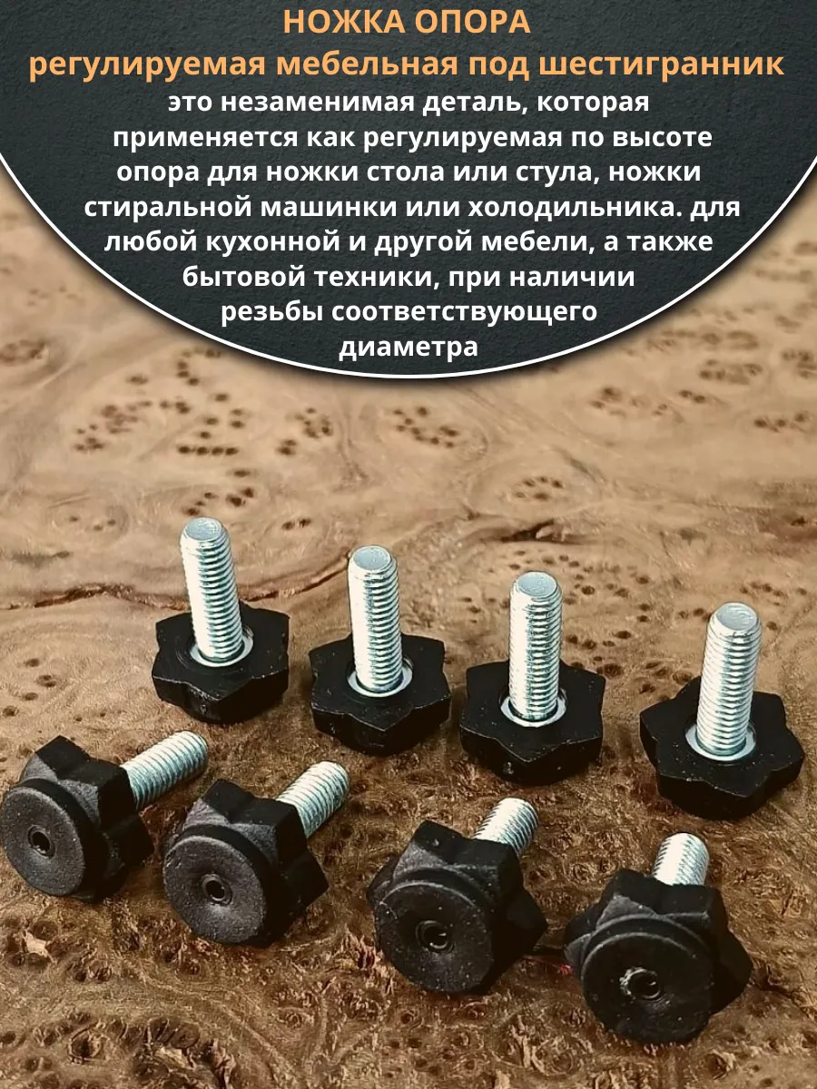 Ножка опора D22 М8х25 регулируемая мебельная под шестигранник 12 шт