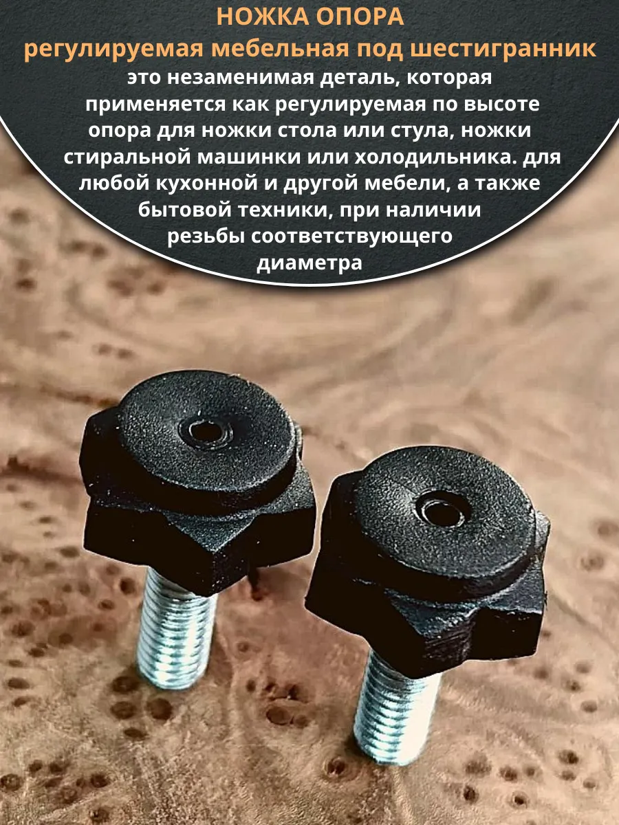 Ножка опора D22 М8х25 регулируемая мебельная под шестигранник 2 шт