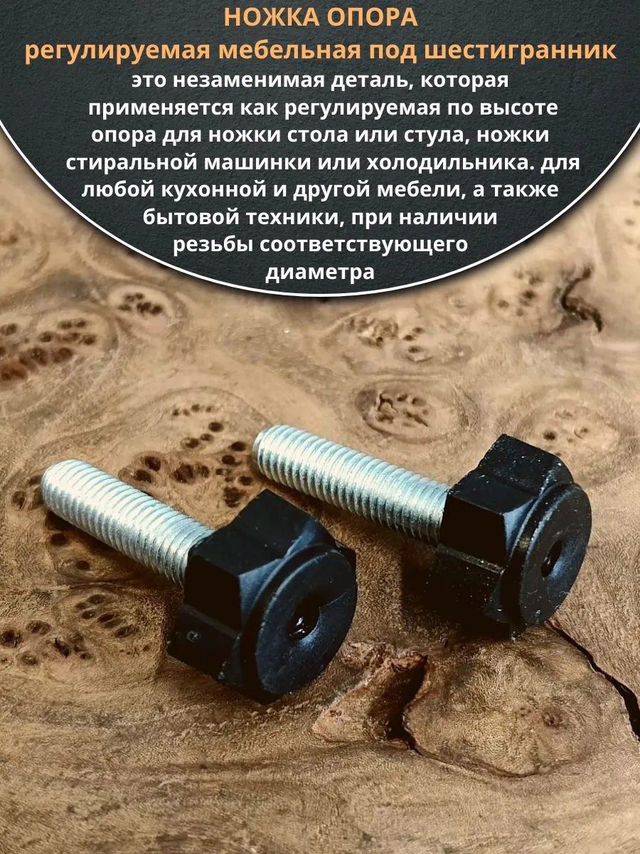 Ножка опора D22 М8х30 регулируемая мебельная под шестигранник 2 шт