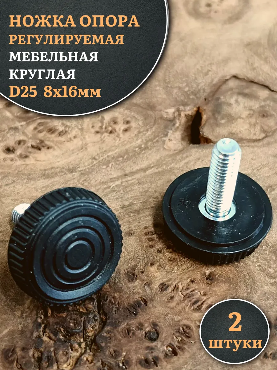 Ножка опора D25 М8х16 регулируемая мебельная круглая 2 шт