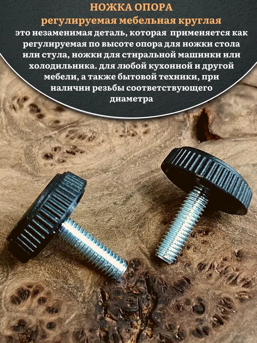 Ножка опора D25 М8х20 регулируемая мебельная круглая 2 шт