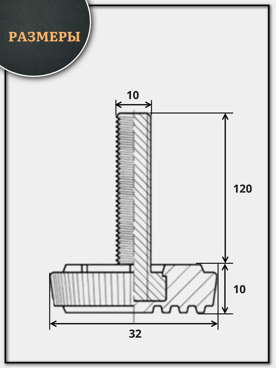 | Ножка опора D32 М10х120 регулируемая мебельная круглая 12 шт | 33-0720ф12 | 1 шт. |