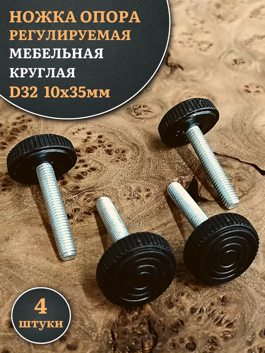 Ножка опора D32 М10х35 регулируемая мебельная круглая 4 шт
