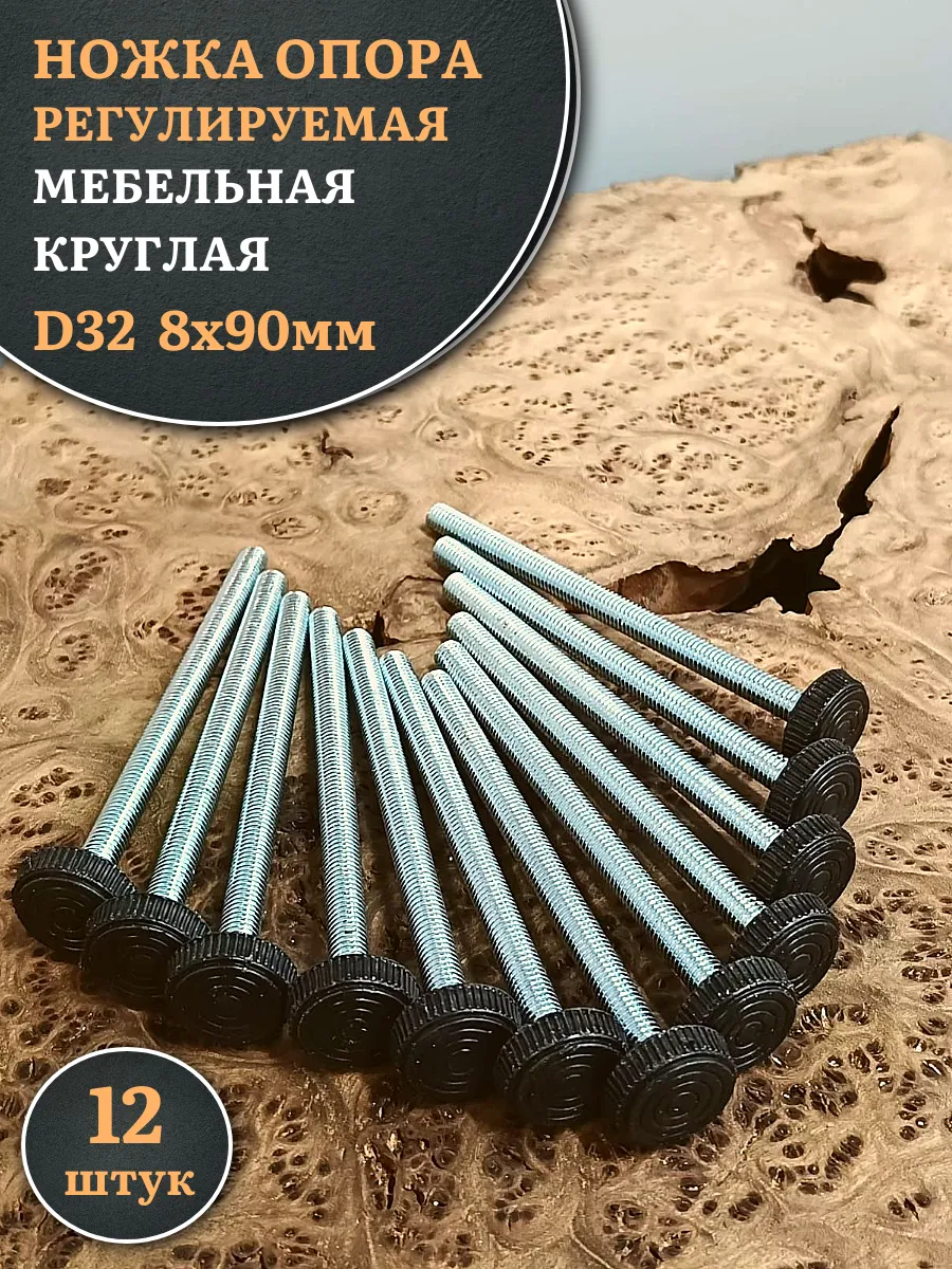 Ножка опора D32 М8х90 регулируемая мебельная круглая 12 шт