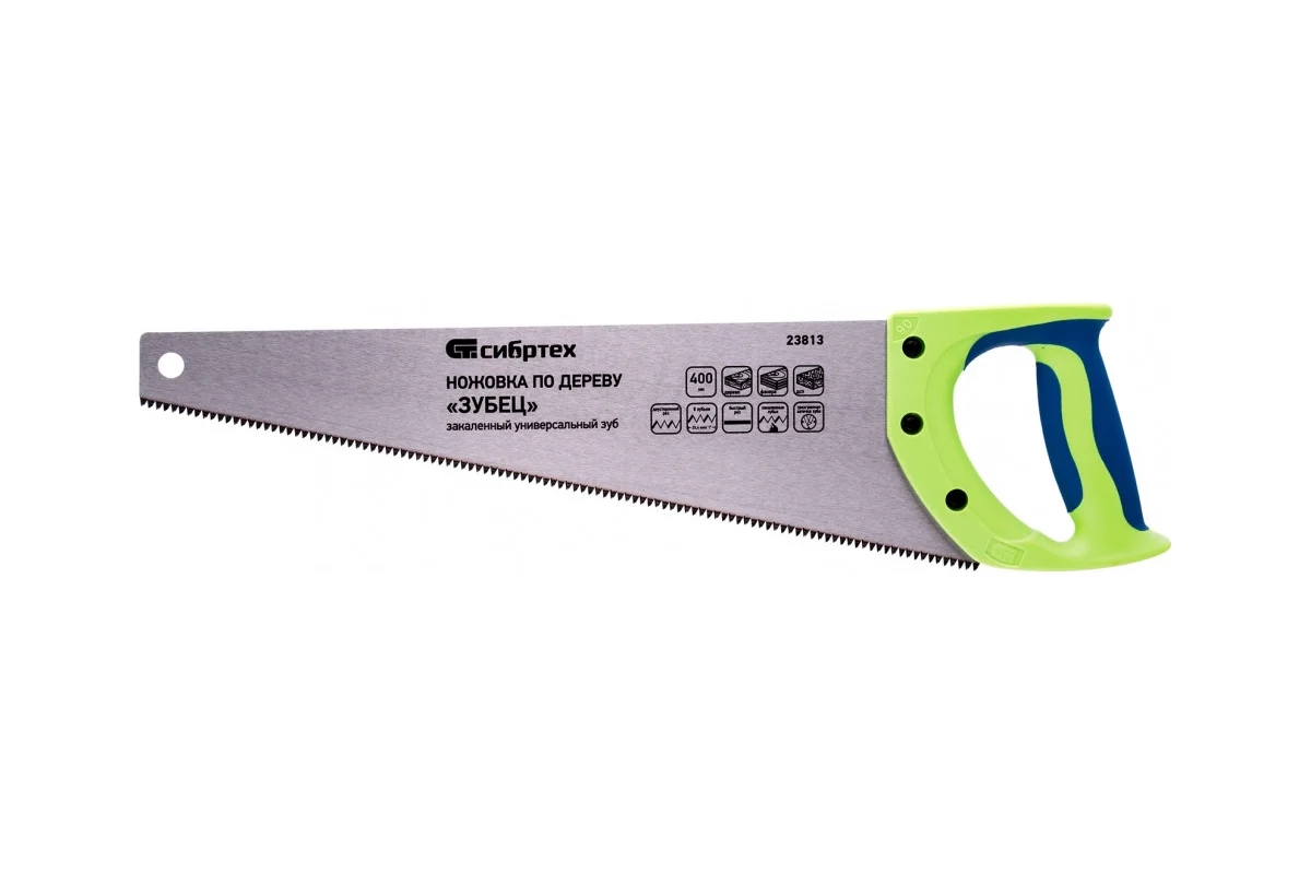 Ножовка по дереву Зубец, двухкомп.рук.,зуб 3D, каленый зуб, 7-8 TPI 400мм Сибртех