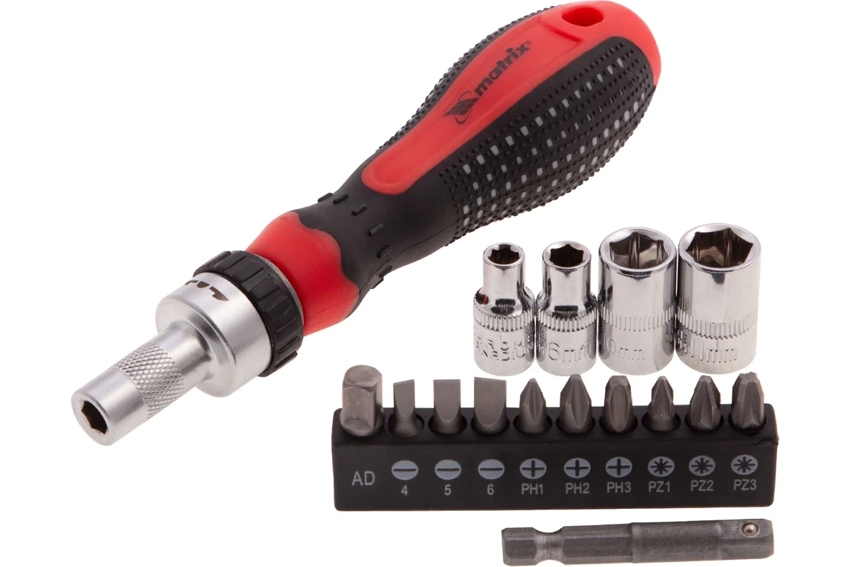 Отвертка реверсивная с набором бит 16 предметов 1/4" CrV Matrix