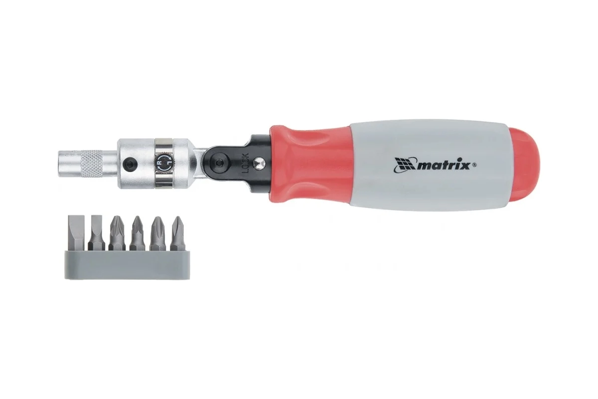 Отвертка реверсивная, поворотная головка, набор бит, CrV, 6 шт Matrix