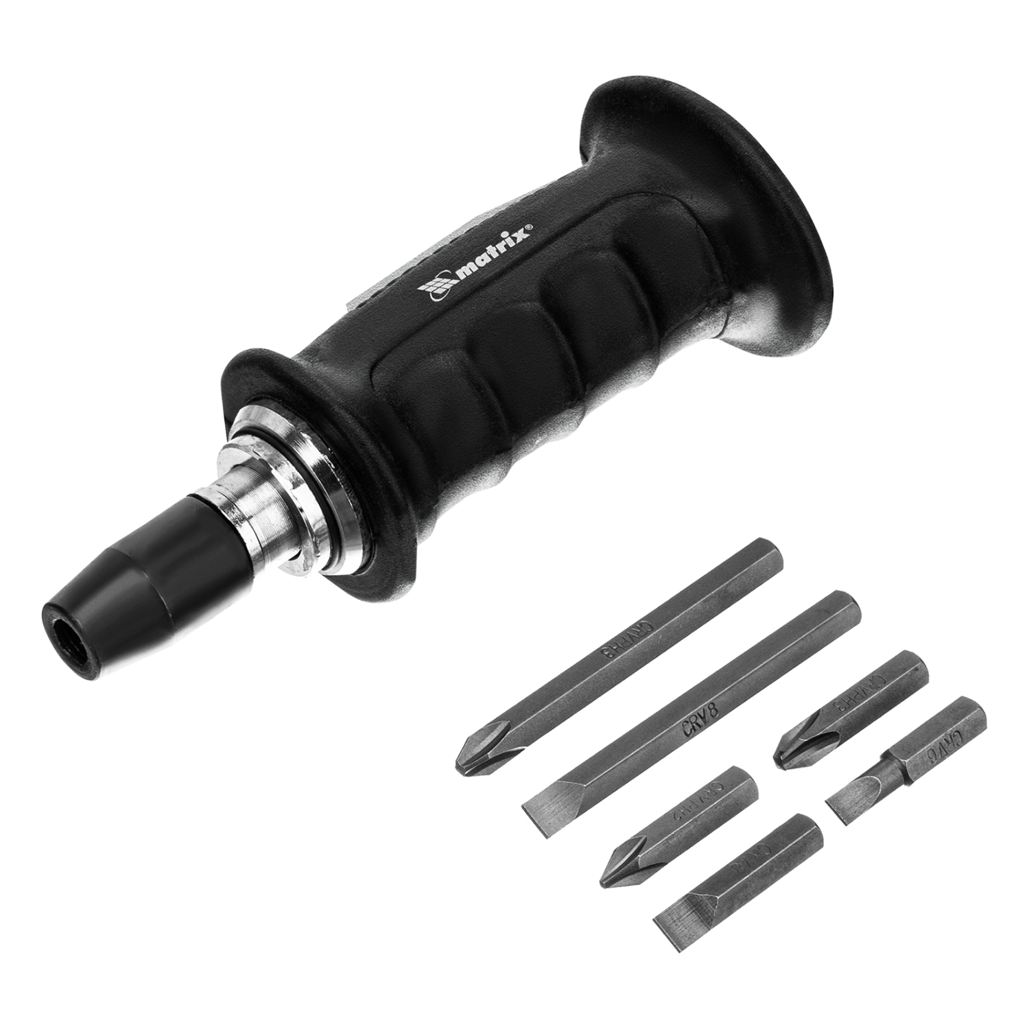 Отвертка ударно-поворотная 1/2", набор бит, PH+SL+CS, обрезиненная рукоятка 6 шт Matrix