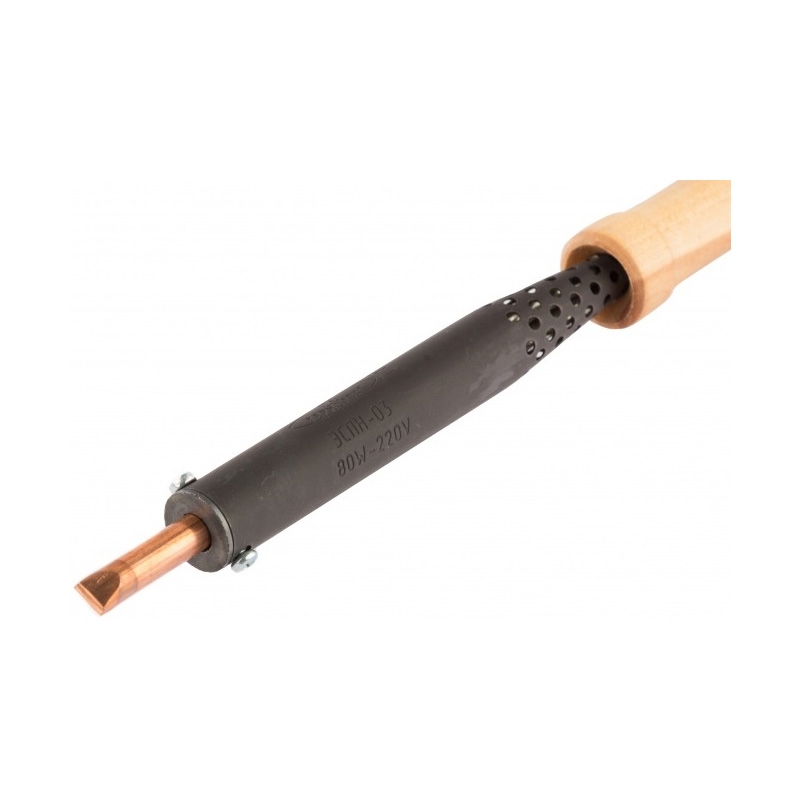 Паяльник электрический ЭПCН-03-80/220 с деревянной рукояткой, Сибртех предназначен для проведения электромонтажных работ, для пайки электрокомпонентов, проводов, мелких металлических и пластиковых деталей, радиосхем, ремонта бытовой техники.