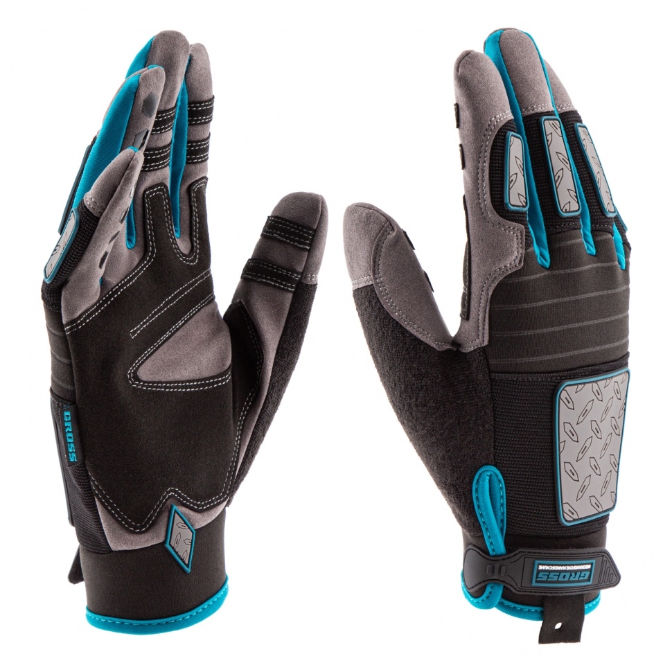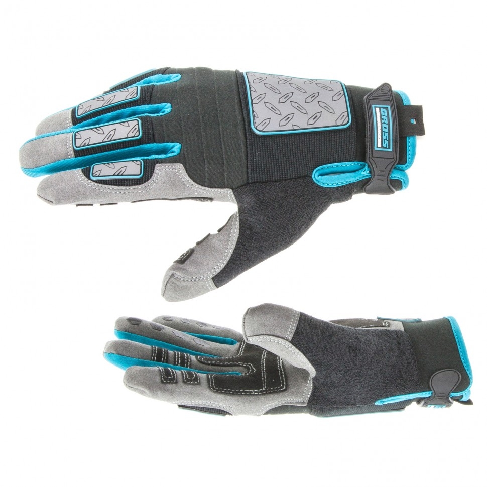 Универсальные комбинированные перчатки Gross DELUXE 90333 размера L защищают руки от механических воздействий и образования мозолей. Анатомически скроенные перчатки плотно облегают кисти рук и не сковывают движения. Силиконовые накладки на внутренней стороне пальцев препятствуют выскальзыванию инструментов и снаряжения из рук. Перчатки пригодятся при работе с ручным и электрическим инструментом, занятиях мото- и велоспортом, а также при участии в спортивных высокотравматичных играх.Износостойкость — благодаря прокладкам на пальцах и формованной накладке на ладонной части перчатки защищены от протирания. Возможность использования в холодный период — на внешней стороне пальцев находится резиновое покрытие, обеспечивающее термическую защиту. Надежная фиксация — манжеты снабжены лентами-застежками velcro, благодаря которым изделия не сползают с кистей рук. Защита от натирания — при изготовлении перчаток использованы специальные швы Ergonomic Cut, которые не повреждают кожу.