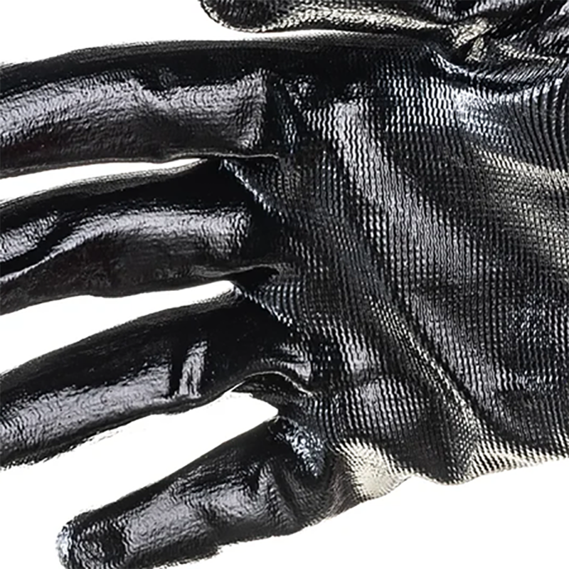 Перчатки полиэфирные с черным нитрильным покрытием, 15 класс вязки, размер L, Stels