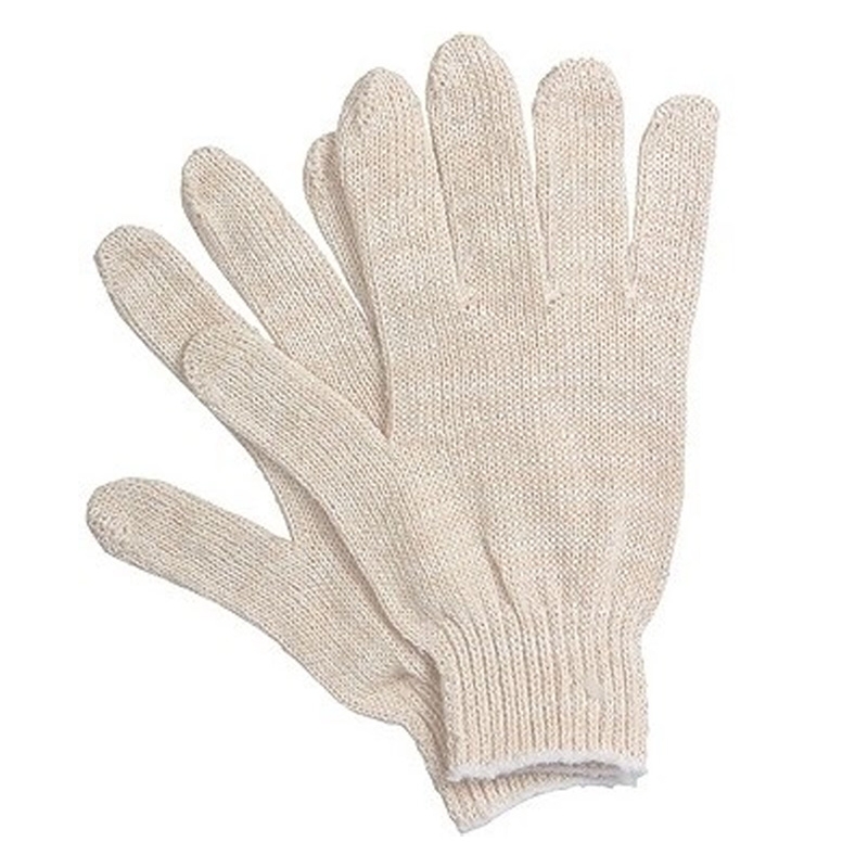 Перчатки трикотажные, 10 класс вязки, Россия будут полезны на строительной площадке, в саду, сборочном цеху. За счет высокой плотности они защищают руки от появления мозолей, царапин и загрязнения. В то же время перчатки обеспечивают свободу движений и тактильность пальцев, что позволяет проводить точные работы. Преимущества Хлопчатобумажная ткань с добавлением полиэфирной нити хорошо пропускает воздух, не вызывает аллергической реакции и приятна на ощупь, поэтому в перчатках комфортно работать. Перчатки легко очищаются и не разрушаются при машинной стирке, поэтому их можно использовать много раз. Эластичные манжеты надежно фиксируют перчатки на запястье, предотвращая их соскальзывание.