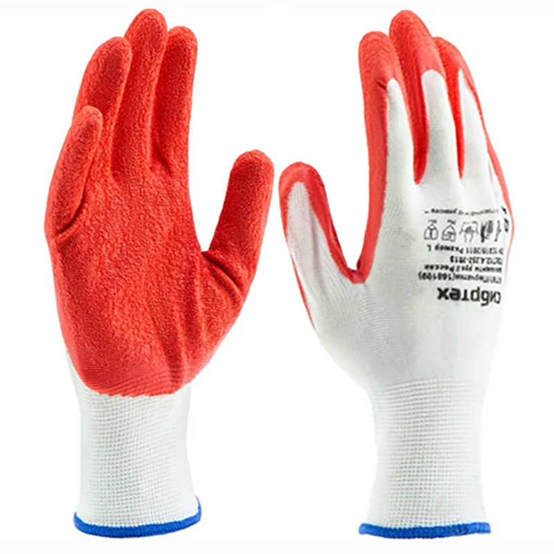 Перчатки трикотажные полиэфирные, латексное рельефное покрытие, Сибртех