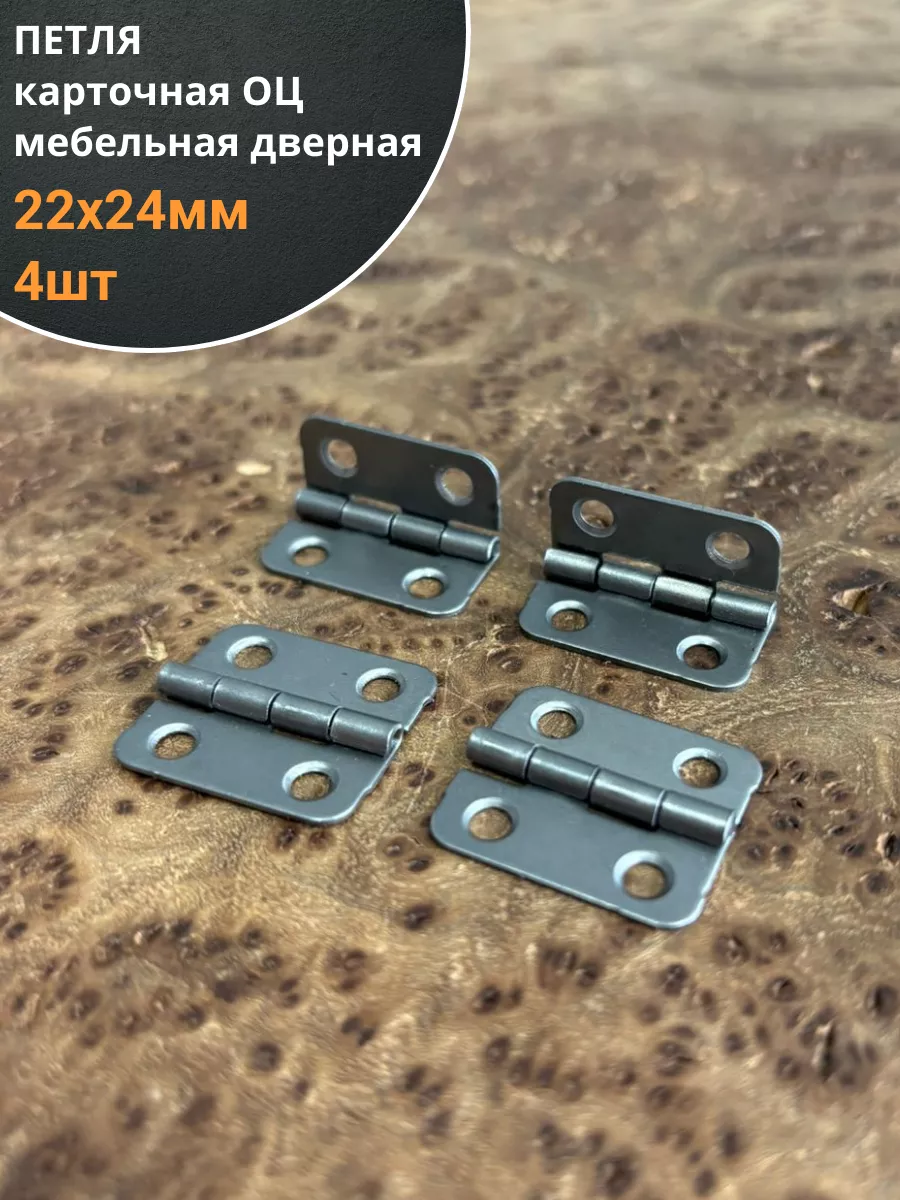 Петля карточная 22х24 мебельная дверная ОЦ, 4 шт.
