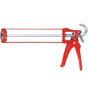 Пистолет для герметика каркасного типа. При помощи пистолета герметик наносится равномерно и без усилий. Пользоваться им просто — для подачи средства достаточно нажать на курок. Инструмент имеет простую конструкцию — установка тубы в корпус или ее замена занимает несколько секунд. Пистолет пригодится во время ремонтных, отделочных, сантехнических работ.