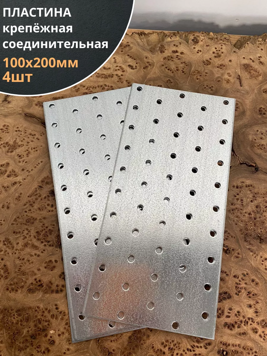 Пластина крепёжная соединительная 100х200 ОЦ, 4 шт.