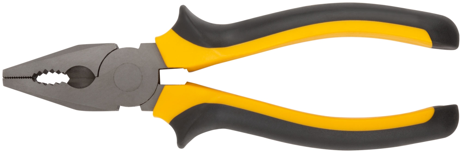 Плоскогубцы комбинированные. Материал: усиленная инструментальная сталь, молибденовое антикоррозийное покрытие, мягкие прорезиненные ручки. Упаковка: пластиковый подвес.