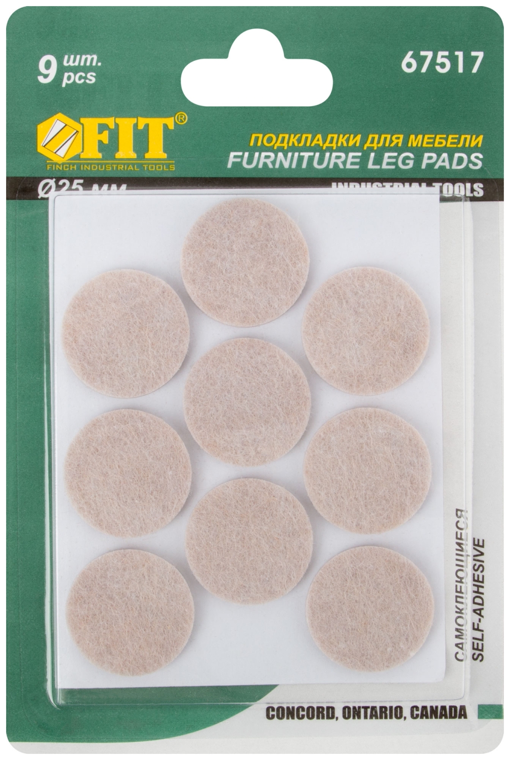 Подкладки для мебели самоклеющиеся круглые 25 мм 9 шт. войлок