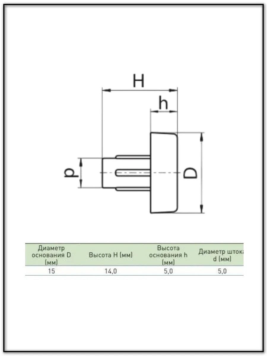 | Подпятник гриб мебельный d 15 мм под отверстие 5 мм, 50шт | 18-0200ф50 | 1 шт. |