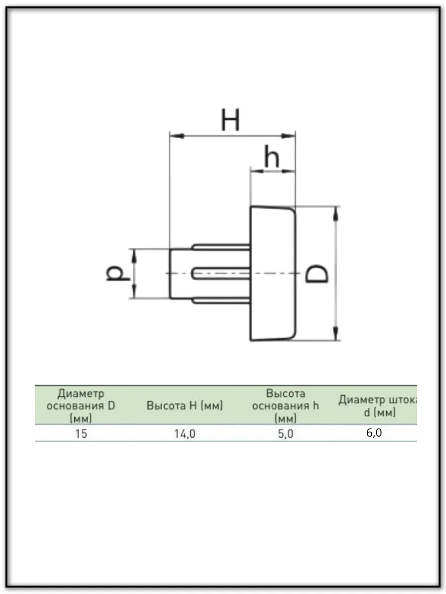 | Подпятник гриб мебельный d 15 мм под отверстие 6 мм, 10шт | 18-0205ф10 | 1 шт. |