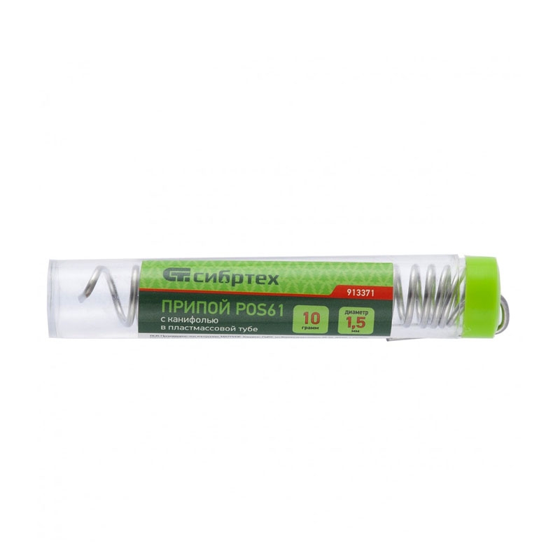 Припой с канифолью D 1,5 мм, 10 г, POS61, в пластмас.тубе Сибртех