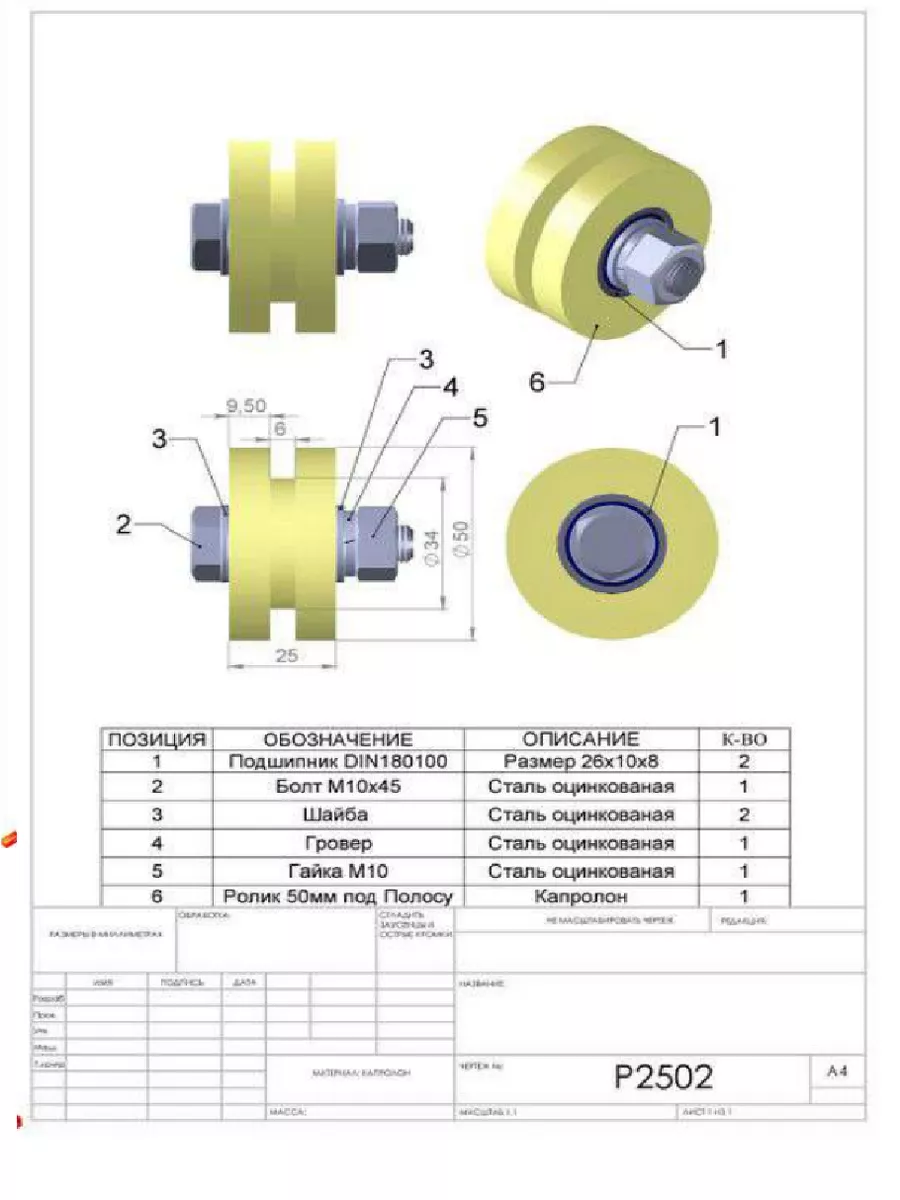 Ролик для ворот под полосу Р2502, d50мм, капролон, 2 шт.