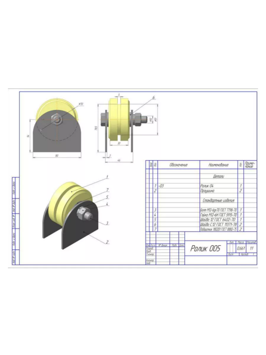 Ролик на пластинах d 70 мм под полосу 35мм, капролон, 4 шт.