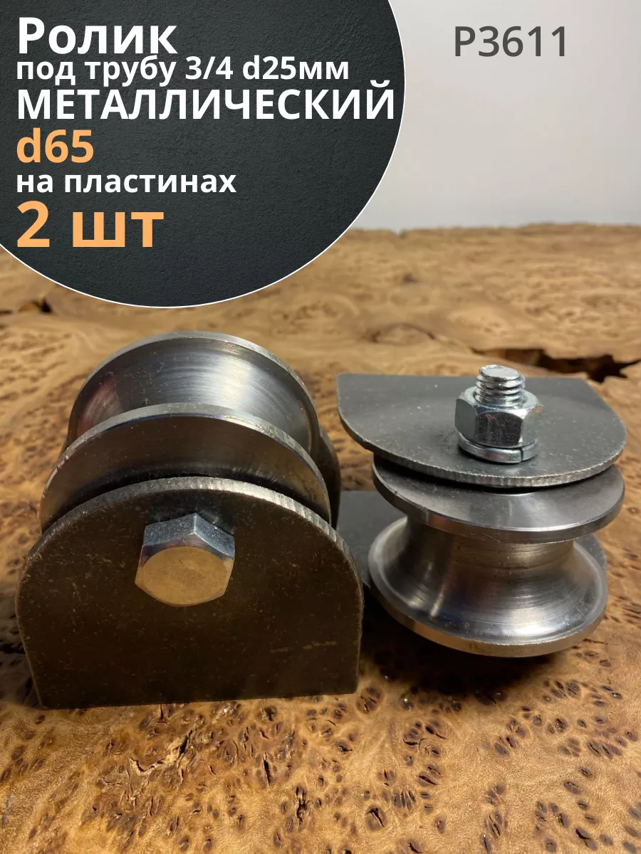 Ролик на пластинах Р3611, d65мм, под трубу 3/4 d25, 2 шт.