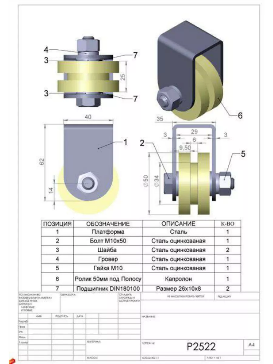 Ролик на платформе d под полосу, капролон, 4 шт.