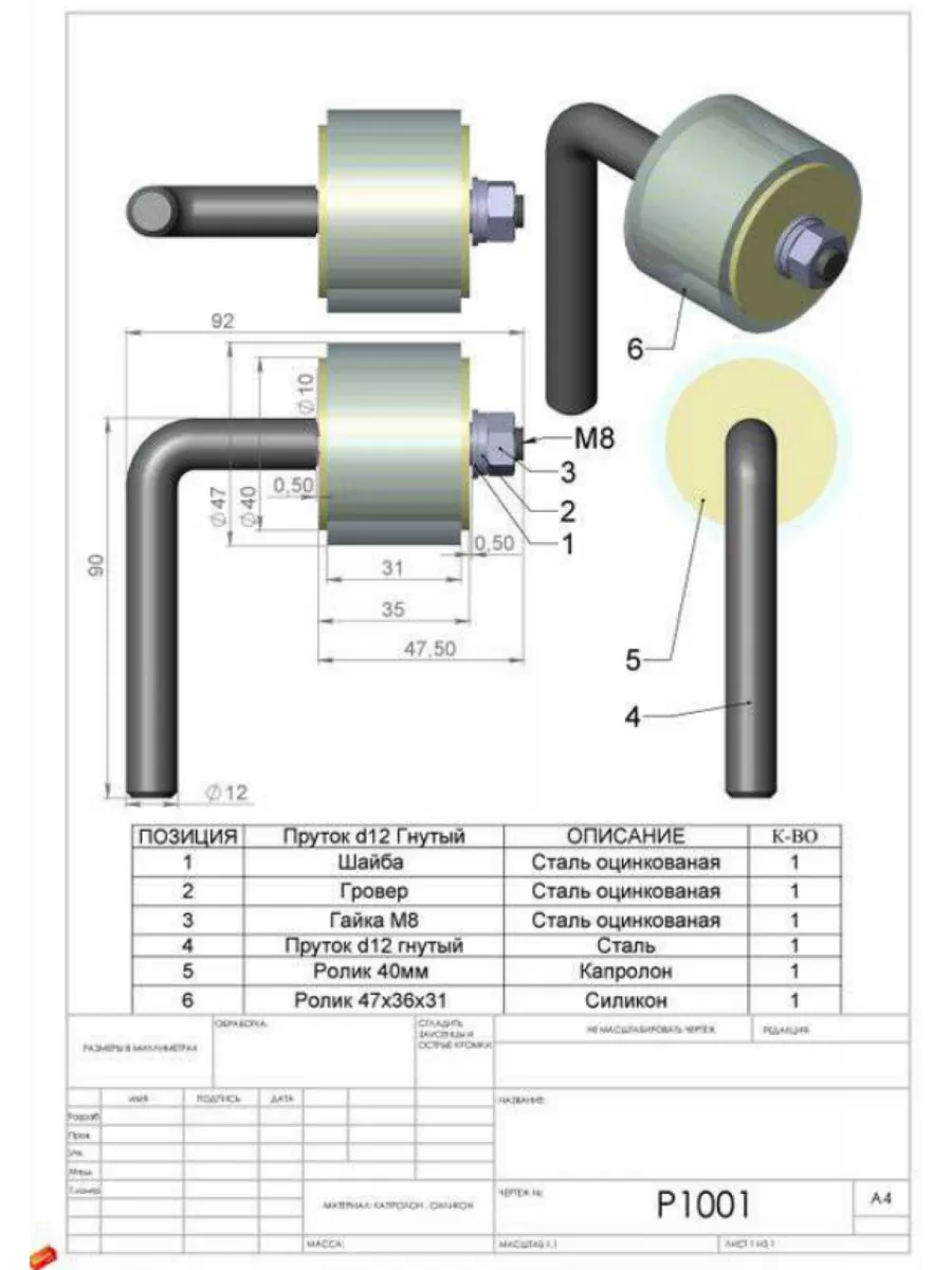 Ролик поддерживающий атмосферостойкий гнутый К1001, 2 шт.