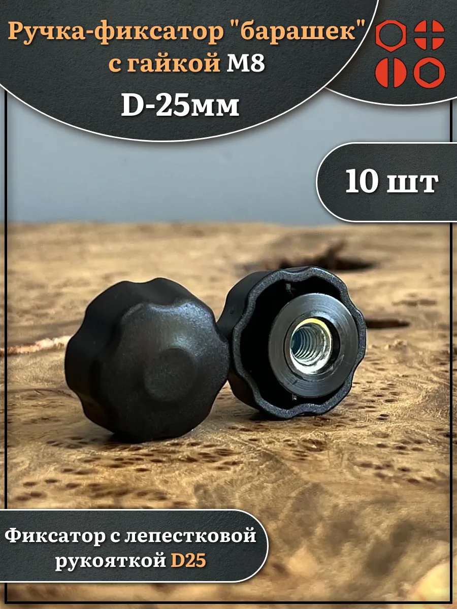 Ручка фиксатор барашек d 25 с гайкой М8, 10 шт.