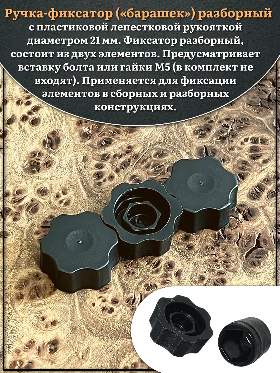 Ручка фиксатор барашек разборный d21 болт М5 (не в комплекте), 50 шт.