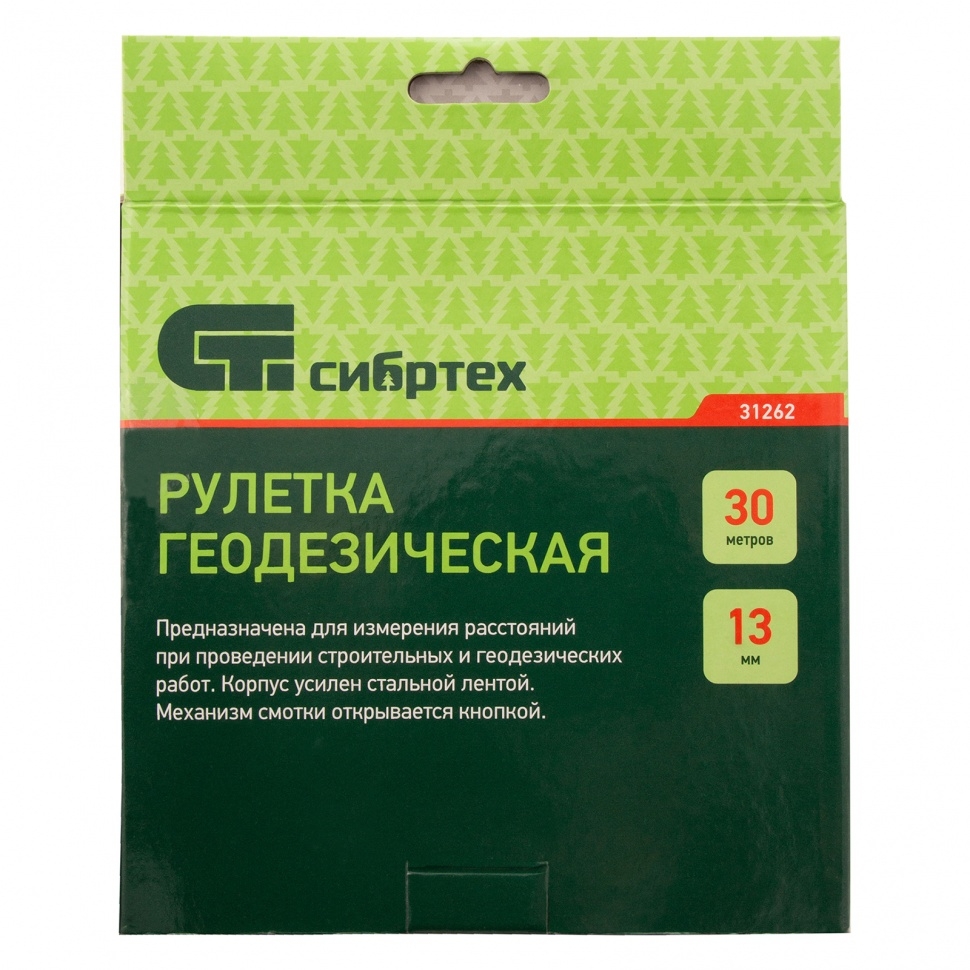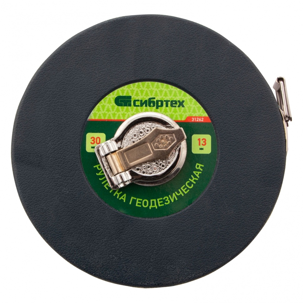 Геодезическая рулетка Сибртех 31262, 30 м х 13 мм, в закрытом корпусе, с фибергласовой лентой, — измерительный инструмент для определения расстояний и проведения замеров различных объектов. Закрытый корпус из прочного ABS-пластика, усиленный стальной лентой, обеспечивает инструменту повышенную стойкость к механическим воздействиям. Рулетка пригодится при выполнении строительных и ремонтных работ, обмеров садовых участков, а также при формировании ландшафтов. Фибергласовое измерительное полотно не подвержено коррозии и устойчиво к повреждениям, что продлевает срок службы инструмента. Складной стальной зацеп фиксирует конец ленты на объекте, что облегчает проведение измерений. Возвратный механизм открывается нажатием кнопки, поэтому инструмент удобен в эксплуатации.