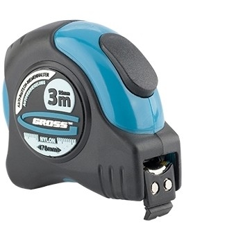Рулетка Schlagfest,магнит.обрезин.зацеп, двухст.шкала, нейлон.покр., автоматич. 3м х19 мм Gross