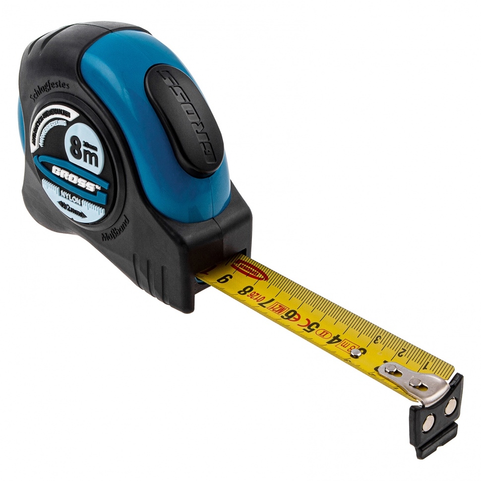 Рулетка Schlagfest,магнит.обрезин.зацеп, двухст.шкала, нейлон.покр., автоматич. 8м х25 мм Gross