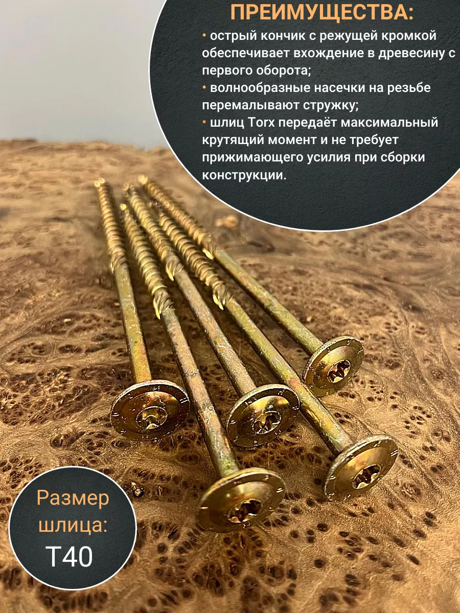 Саморез 10х220 по дереву с прессшайбой Тorx, ЖЦ, 5 шт.,