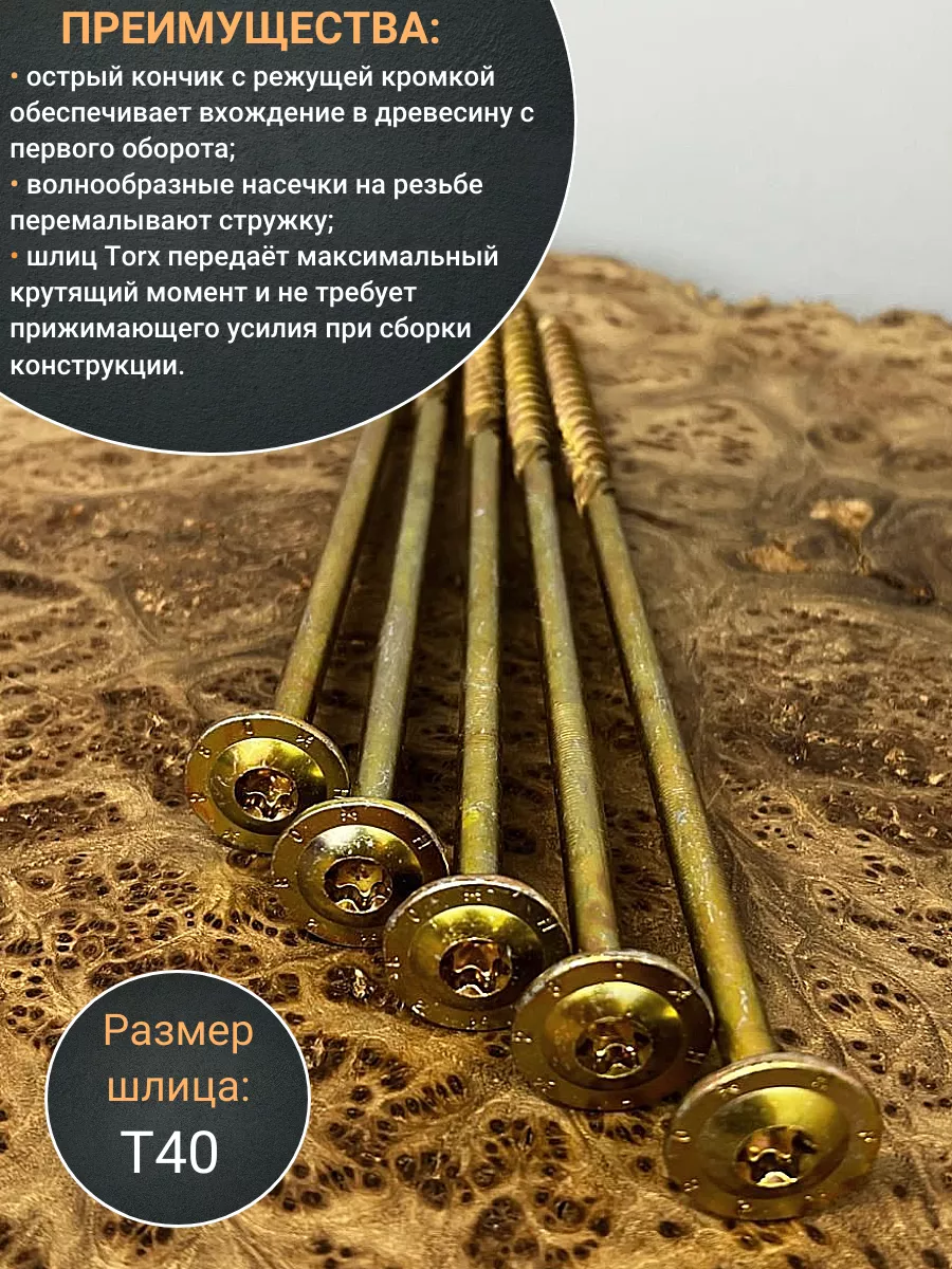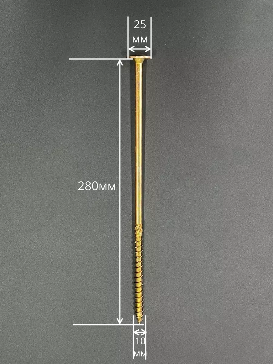Саморез 10х280 по дереву с прессшайбой Тorx, ЖЦ, 5 шт.
