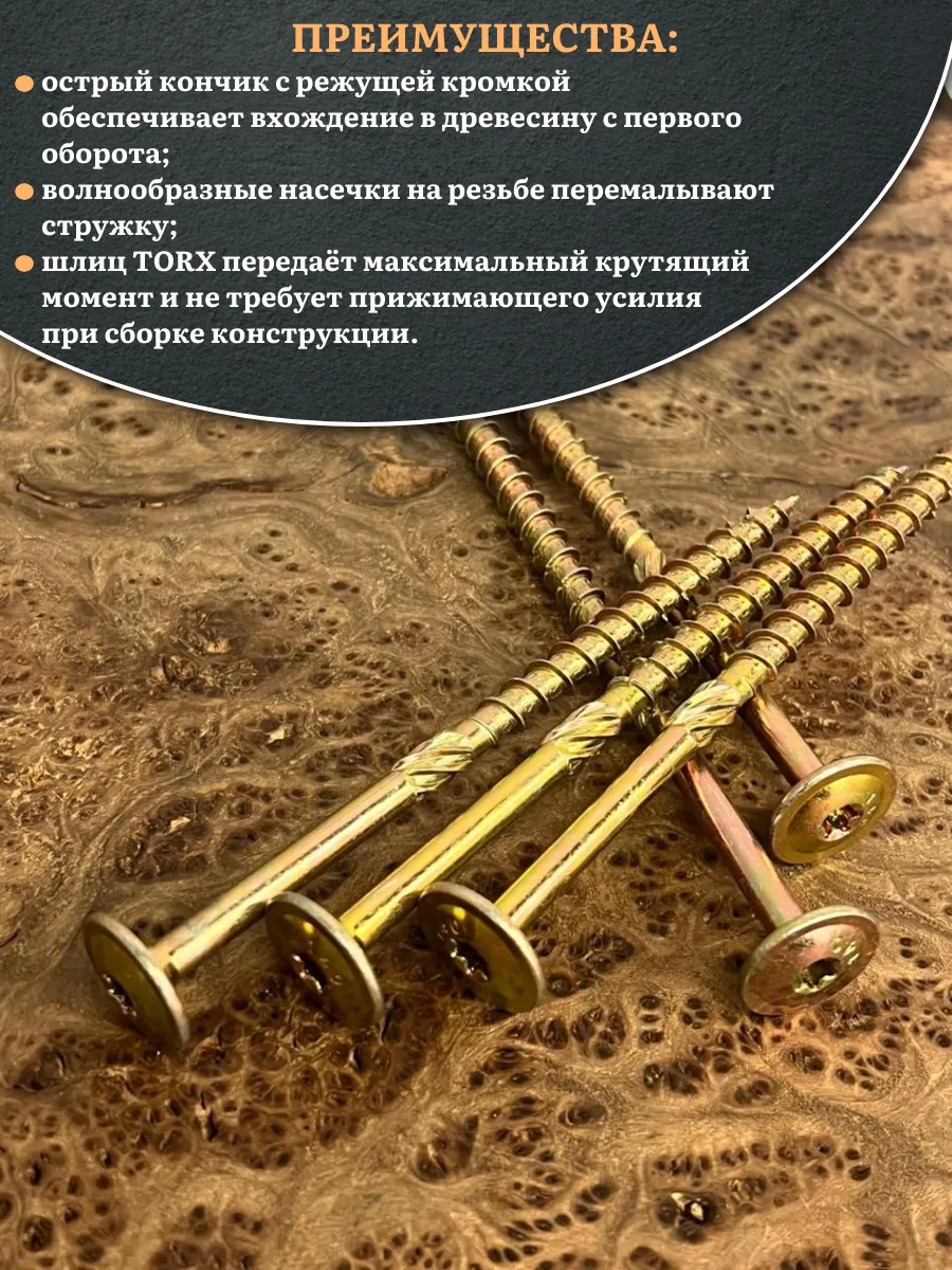 Саморез 8х120 по дереву с прессшайбой Тorx, ЖЦ, 5 шт.