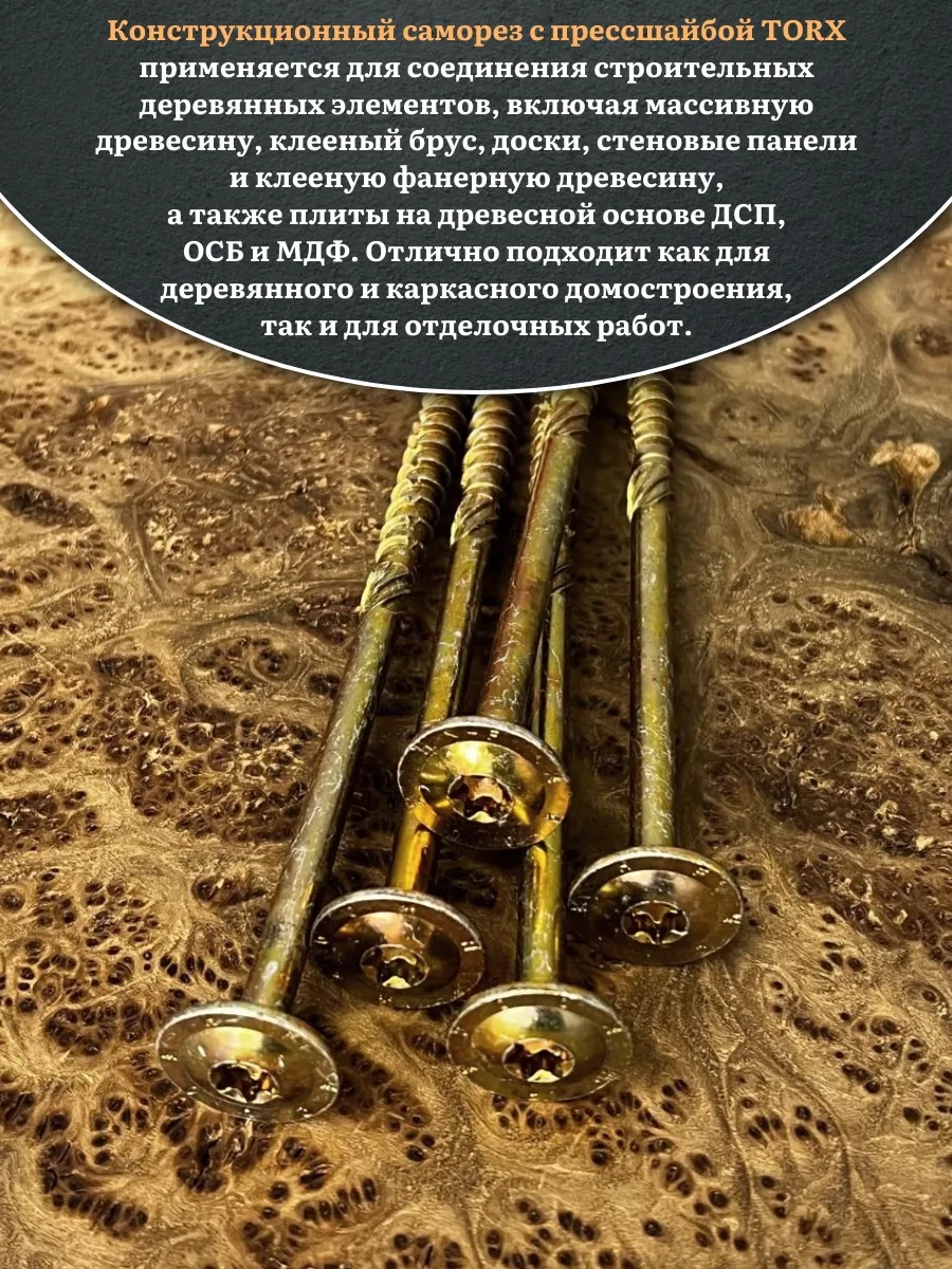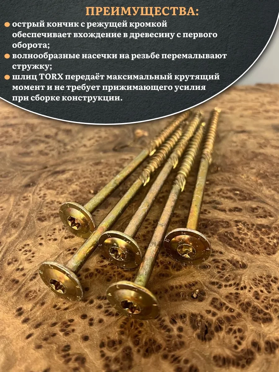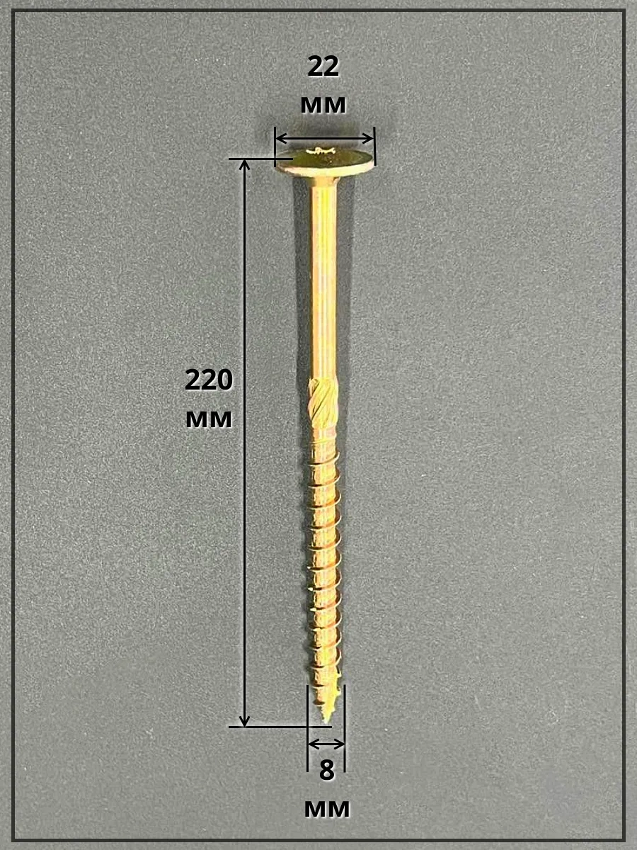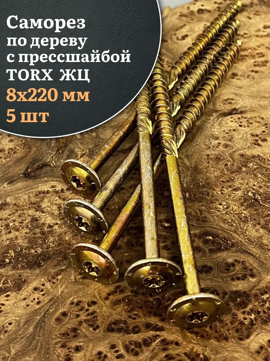 Саморез 8х220 по дереву с прессшайбой Тorx, ЖЦ, 5 шт.