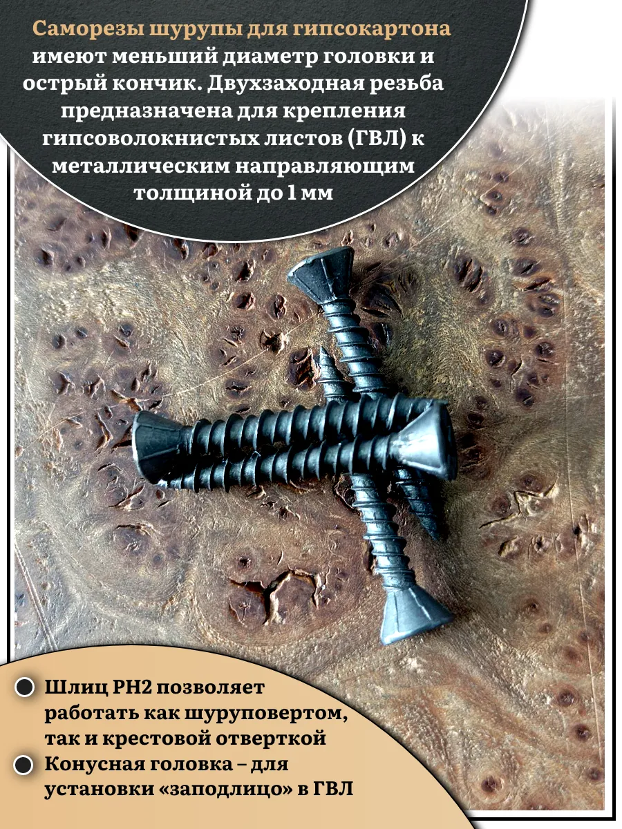 Саморез для крепления ГВЛ (гипсокартон) 3,9х25, чёрный 50 шт