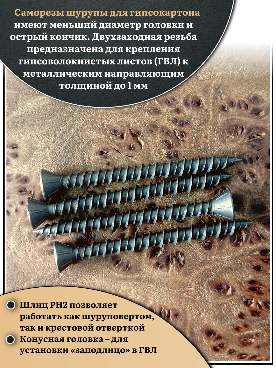 Саморез для крепления ГВЛ (гипсокартон) 3,9х40, чёрный 50 шт