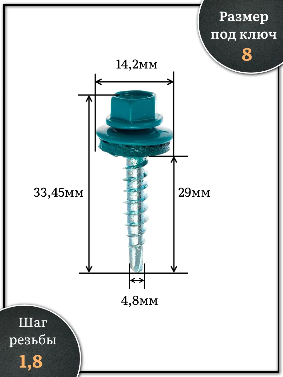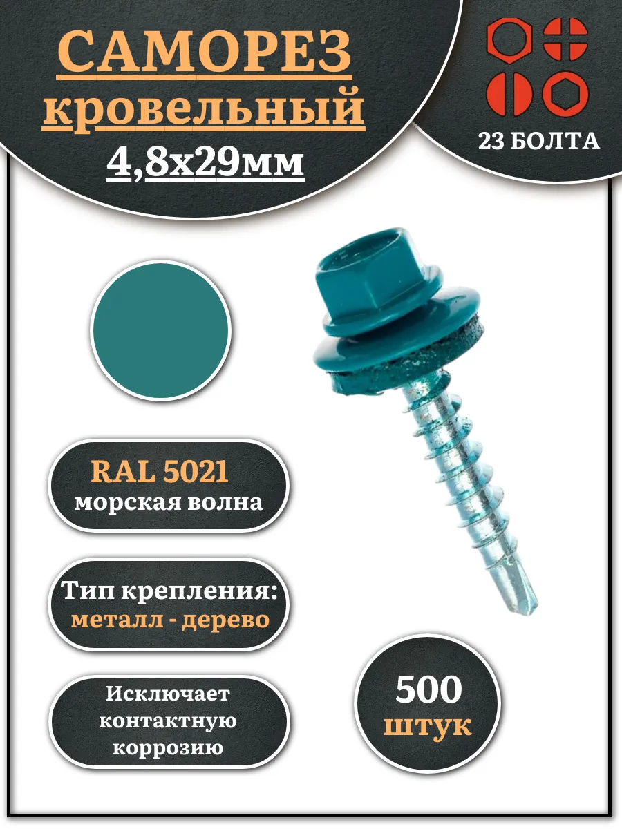 Саморез кровельный, 4,8х29 морская волна RAL5021 500 шт