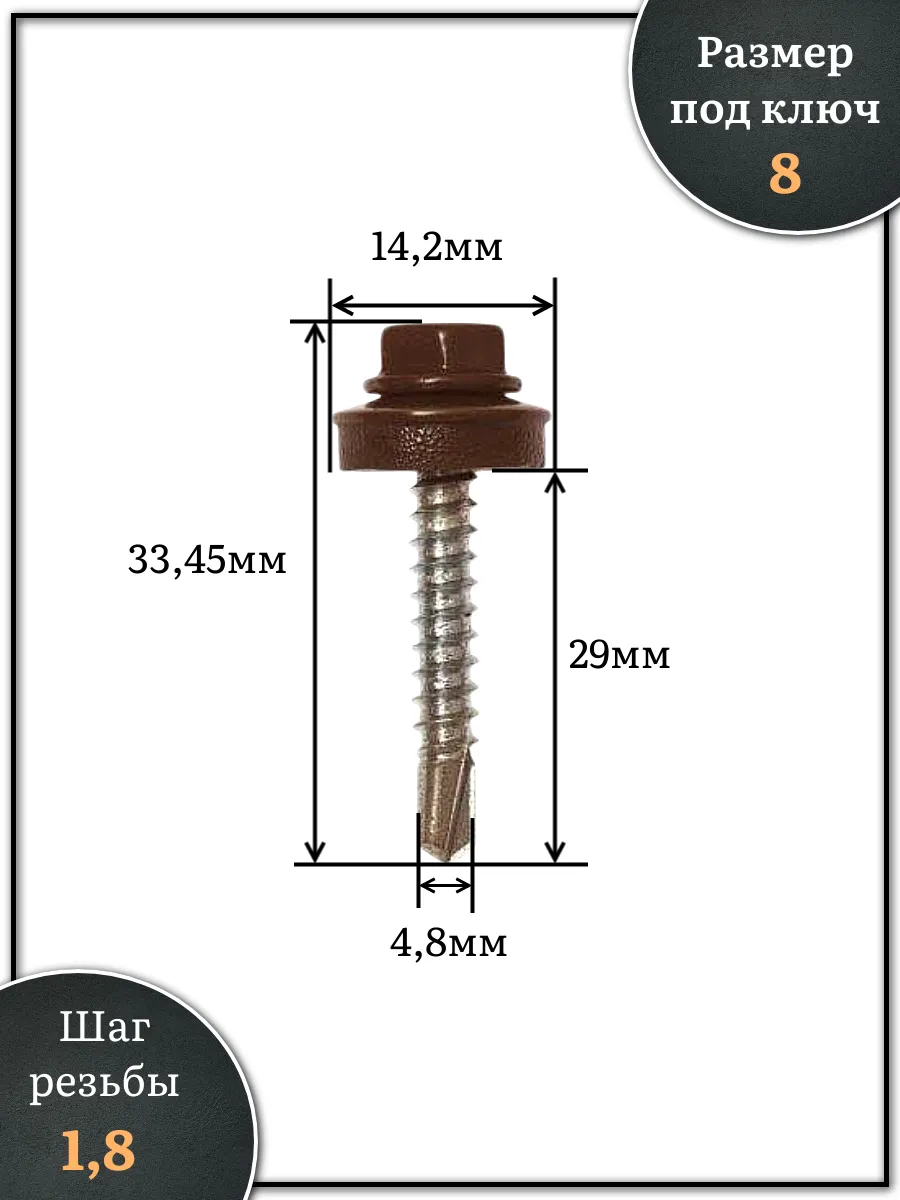 Саморез кровельный, 4,8х29 шоколадно-коричневый RAL8017 1000 шт