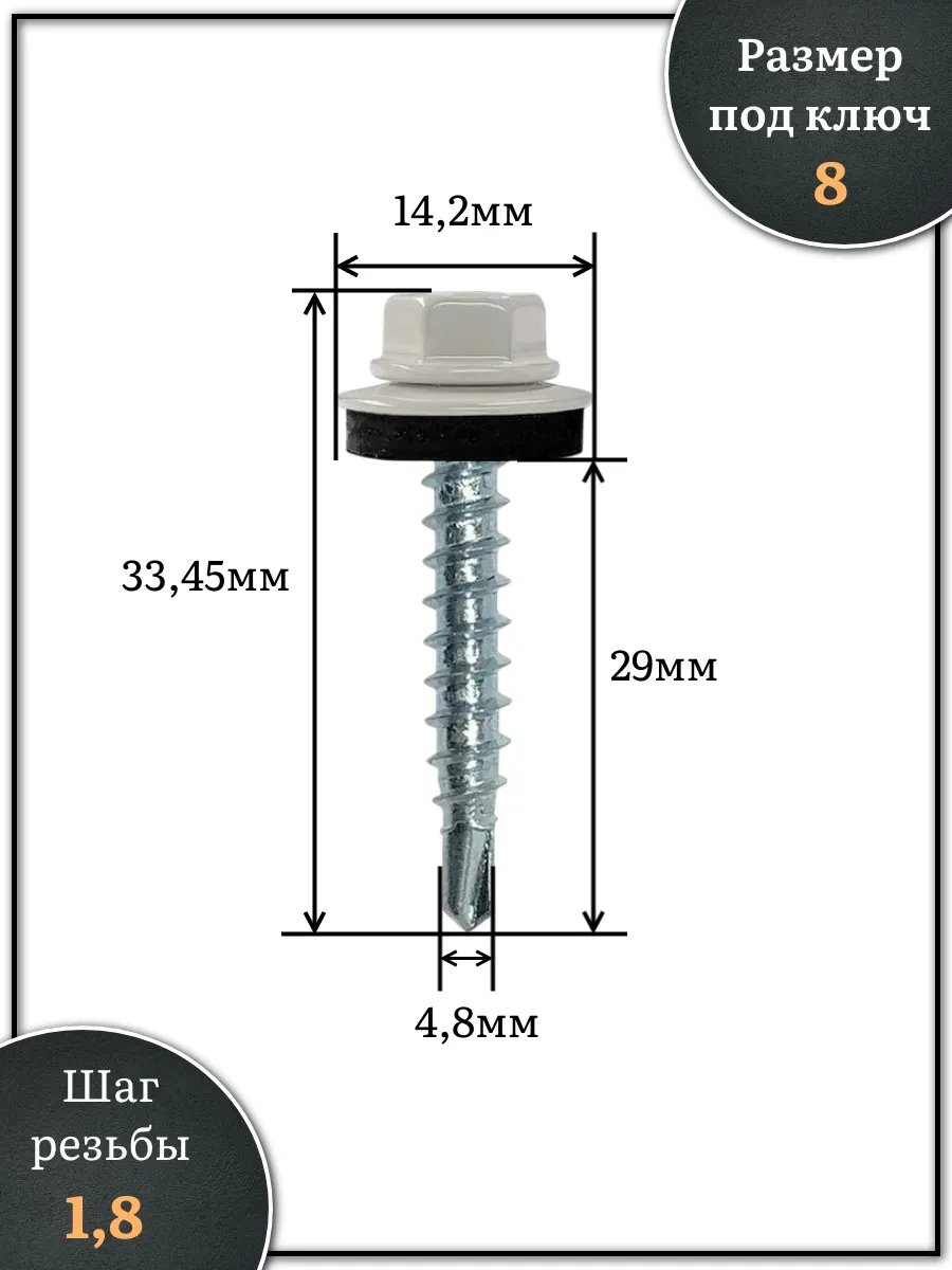 Саморез кровельный, 4,8х29 сигнально-серый RAL7004 500 шт