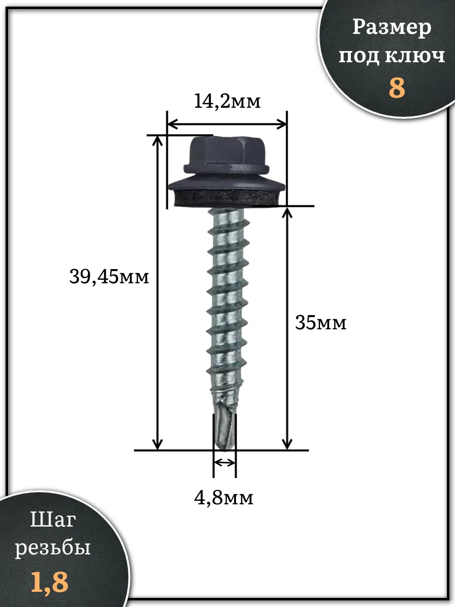 Саморез кровельный, 4,8х35 графитовый серый RAL7024 250 шт