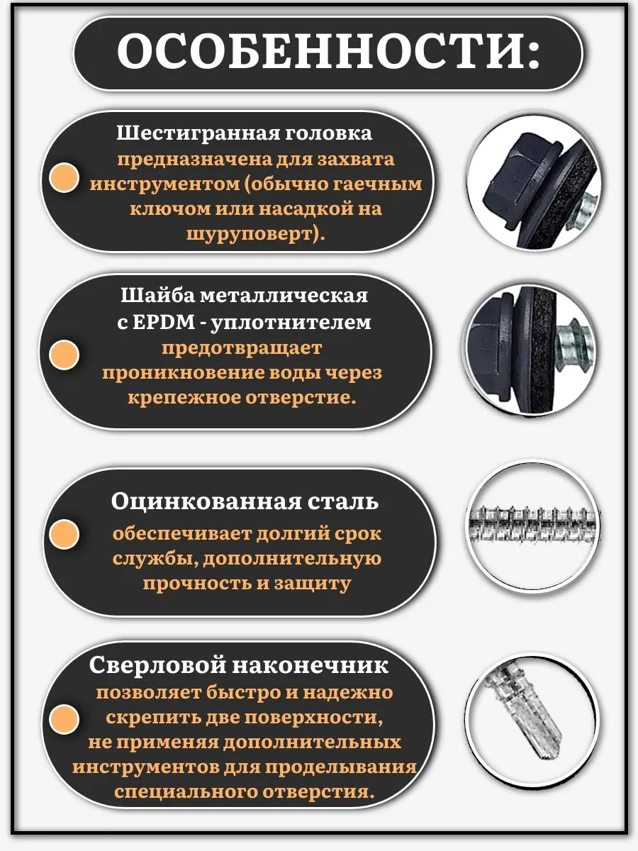 Саморез кровельный, 4,8х35 графитовый серый RAL7024 500 шт