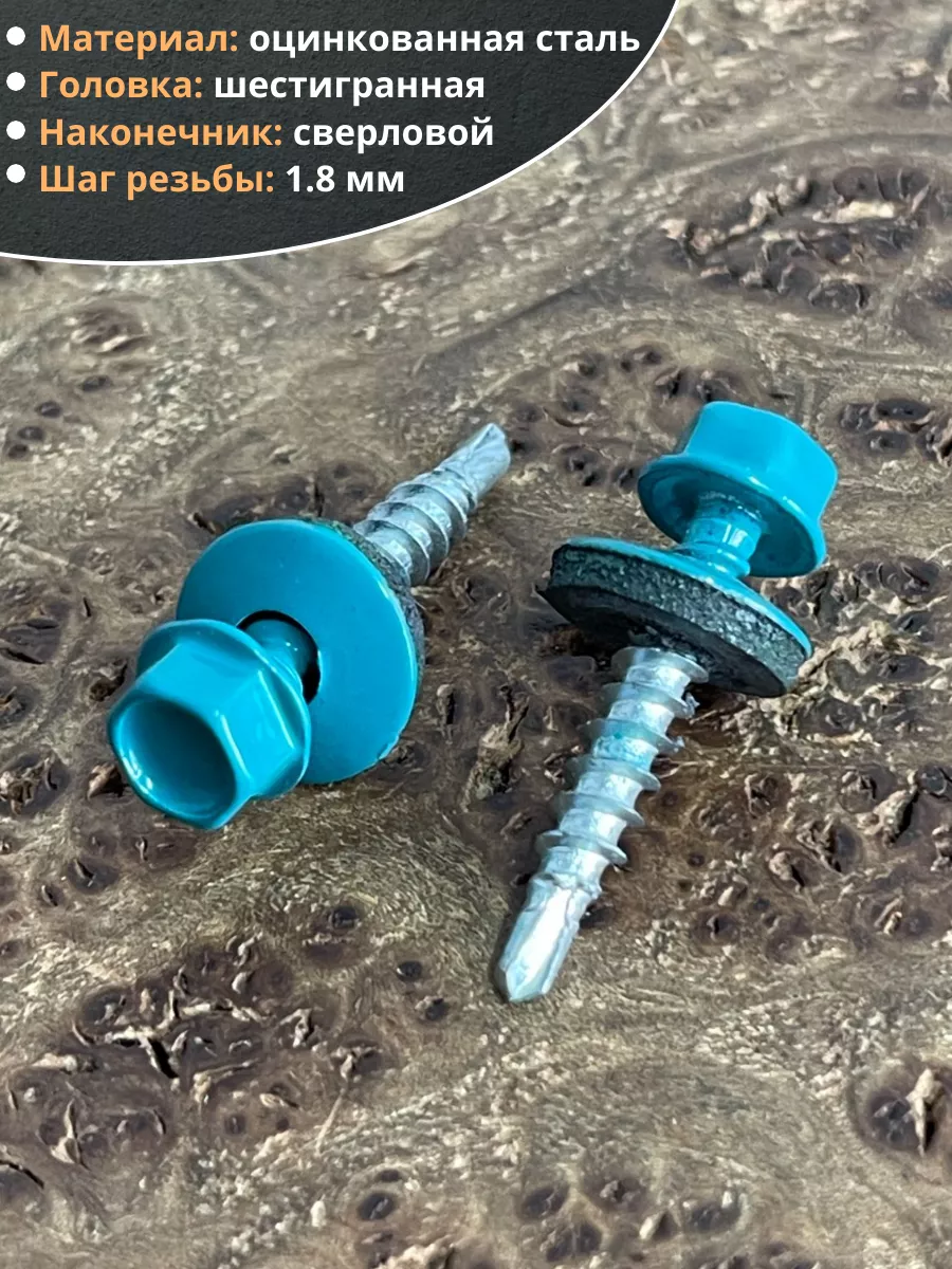 Саморез кровельный, 4,8х35 морская волна RAL5021 50 шт